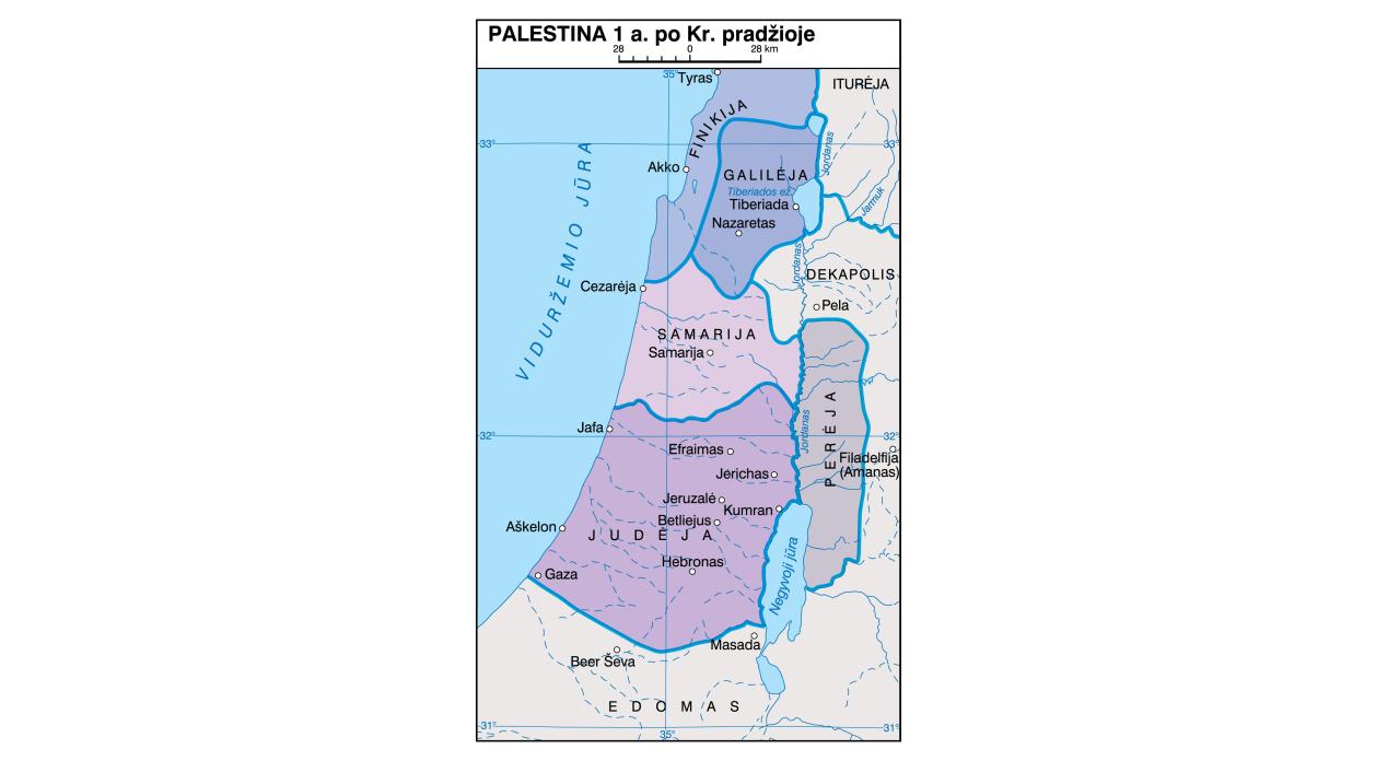 istorinė sritis Vakarų Azijoje, Viduržemio jūros rytinėje pakrantėje. 7 a. apgyventa arabų. 1947 11 29 Jungtinės Tautos pritarė Palestinos padalijimo į žydų ir arabų valstybes planui. 1988 11 15 palestiniečiai paskelbė įkuriantys savo valstybę. 1994 05 04 paskelbta Palestinos autonomija.