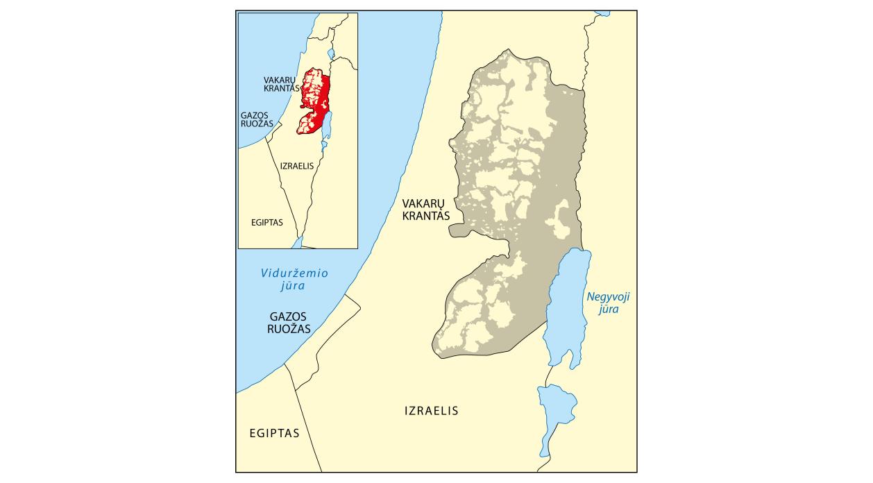 regionas į vakarus nuo Jordano upės ir Negyvosios jūros. 1993 Izraelis ir Palestinos išsivadavimo organizacija pasirašė sutartį, pagal kurią dalis Vakarų Kranto buvo perduota Palestinos autonomijai.